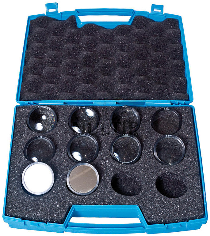 - po jedné čočce: +50 mm, +100 mm, +200 mm, +500 mm, -100 mm, -150 mm, -200 mm, -500 mm
