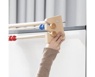Demonstrační kuličkové počítadlo může být při výuce zavěšeno na tabuli nebo postaveno na katedře. Je vyrobeno ze dřevěného masivu, je stabilní a zároveň působí esteticky. V horní části rámu jsou háčky pro zavěšení na tabuli, tyče počítadla lze snadno odejmout.