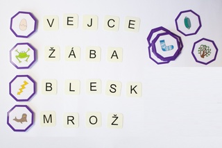 Pomůcka doplňovačky s barevnými kolíčky mohou velmi zábavnou formou procvičovaní ulehčit.