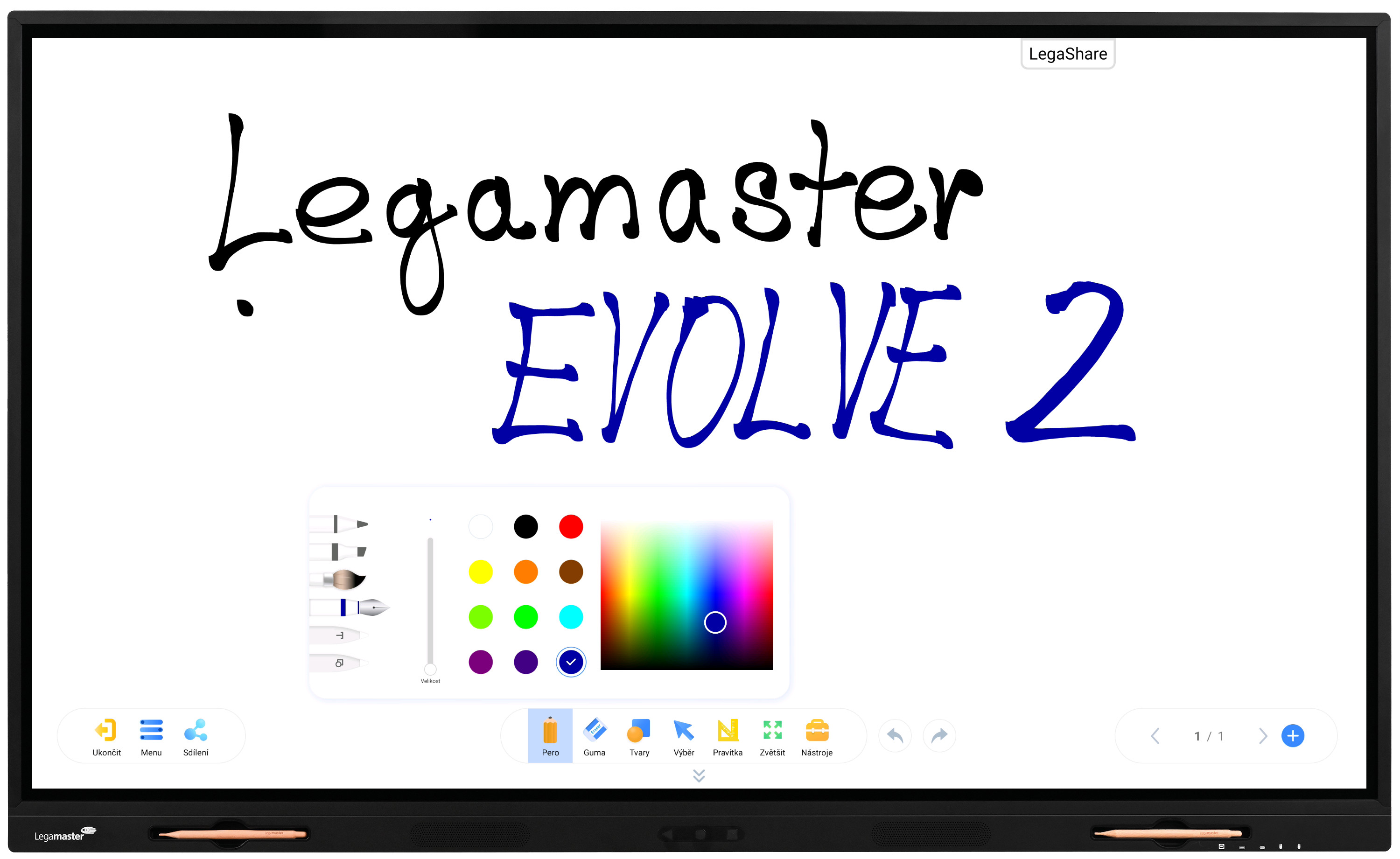 Displej má předinstalovanou aplikaci LegaShare, která dokáže bezdrátově přenášet obraz z mobilního telefonu, tabletu i počítače. Současně je možné na displeji zobrazit až 16 zařízení.
