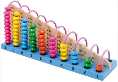 - Na 10 obloucích jsou barevné dřevěné korálky použity jako vizuální pomůcka při výpočtech. Na jedné straně základny je zadáno 55 sčítacích úkolů a na druhé straně je 55 odečtovacích úkolů a lze je rychle vyřešit pomocí dřevěných korálků! Výzva pro všechny malé matematické génie!