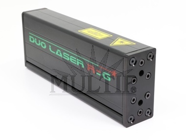 - Duo didaktický laser GR-DL 1 má dva lasery vyzařující světlo různých barev (červený - 635 nm a zelený - 532 nm). Vestavěný přepínač umožňuje přepínat mezi lasery a také laser vypnout.