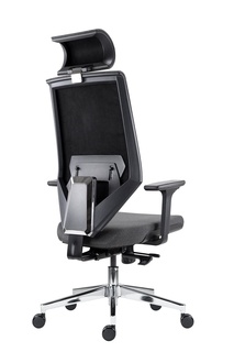 - kancelářská židle s úhlově nastavitelným podhlavníkem, opěrák potažený látkou s výškově nastavitelnou bederní výztuhou Detailní informace