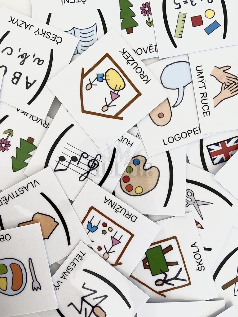 - Komunikační kartičky pro děti s poruchou komunikace, které usnadní pobyt ve škole