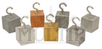 Krychle jsou vhodné pro stanovení hustoty a měření měrných tepelných konstant. Díky háčku se mnohem snadněji vyjímají z vody.