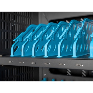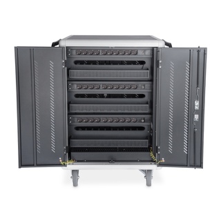 Mobilní nabíjecí skříň až pro třicet tabletů nebo notebooků s velikostí displeje do 15,6". Zařízení je možné nabíjet buď originálním napájecí adaptérem ze zásuvky na 230V nebo přímo z USB-C konektoru. Skříň má robustní kovovou konstrukci, čtyři masivní kolečka a uzamykatelné dvířka z obou stran.