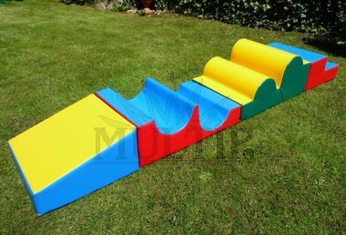 4-dílná kvalitní molitanová stavebnice potažená snadno omyvatelným materiálem, se spodním protiskluzovým povrchem.