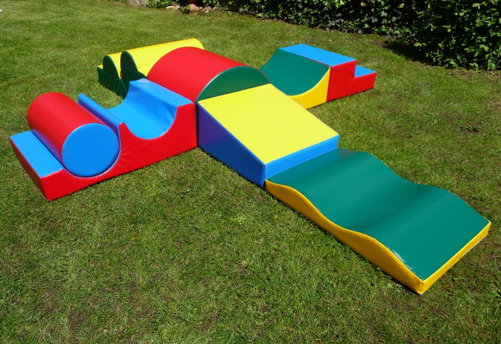 8-dílná kvalitní molitanová stavebnice potažená snadno omyvatelným materiálem.