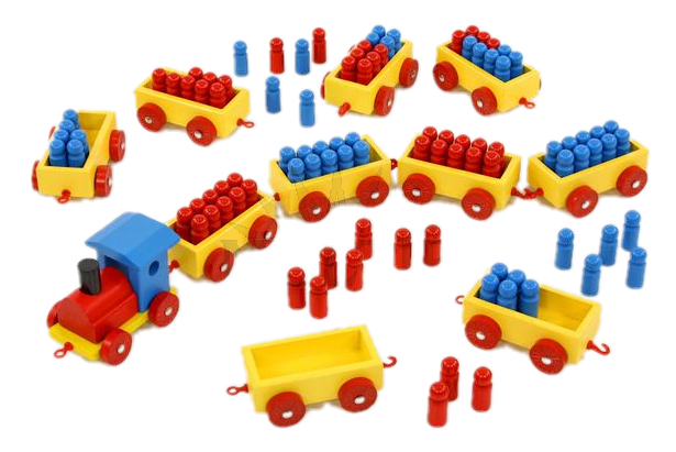 Do každého z barevných dřevěných vagónků může nastoupit až deset cestujících. Jak vláček jede třídou a cestující nastupují a vystupují, děti procvičují základní aritmetické operace. Sada obsahuje lokomotivu, 10 vagónků, 50 modrých a 50 červených figurek, které představují cestující. Vhodné pro děti od 5 let.