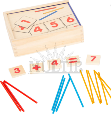 Barevné počítací tyčinky a dřevěné destičky mohou být použity ke sčítání i odčítání.