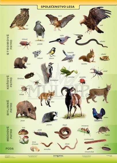 První strana Společenstvo lesa nabádá žáky k tomu, aby si uvědomili druhovou rozmanitost, složení lesního společenstva a jeho prostorové členění v rámci lesních vrstev. Zároveň slouží k projektovému vyučování, protože žáci můžou sestavovat příklady různých potravních řetězců lesních organismů a klást si otázky Jak? Proč? Co se stane, jestliže? a hledat na ně odpovědi.