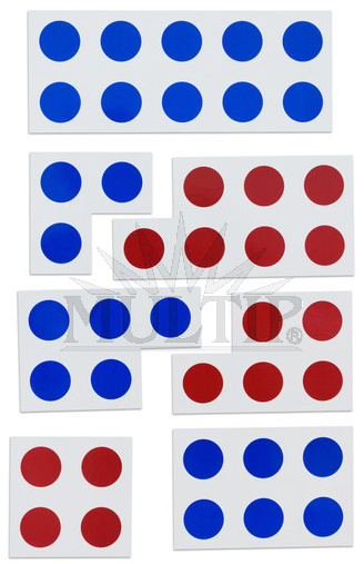 Oboustranné magnetické karty - z jedné strany modré tečky, z druhé strany červené tečky.