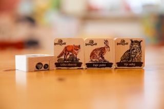 - Včela, Rosnička, Babočka, Vydra, Veverka, Liška, Čmelák, Výr, Stehlík, Sova pálená, Zajíc, Sojka