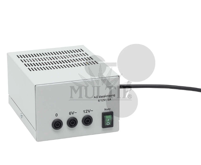 V plechovém krytu s ventilačními otvory, s vypínačem a síťovým přívodním kabelem, 4mm bezpečnostními zdířkami pro střídavé napětí, nestabilizované výstupní napětí, tepelná pojistka a ochrana proti zkratu.