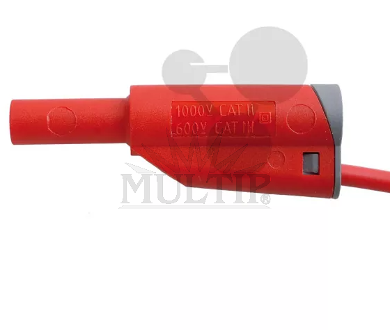 Detailní popis Vodič v bezpečnostním provedení s odbočkou 4 mm, 1 mm2, 50 cm, červený, 10 ks