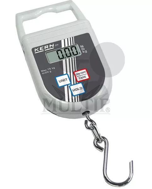 LCD displej (výška 11 mm), tára (funkce odvažování), funkce Hold. Bateriový provoz na 9V baterii.
