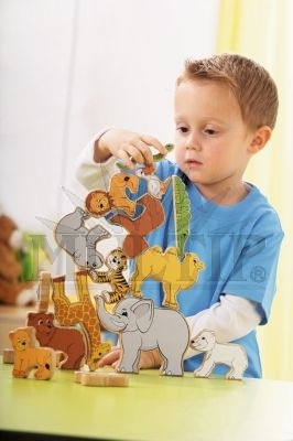 Sada dřevěných zvířátek. Oboustranně barevné. Obsahuje 18 figurek. Rozměry: slon 15 x 11 cm.